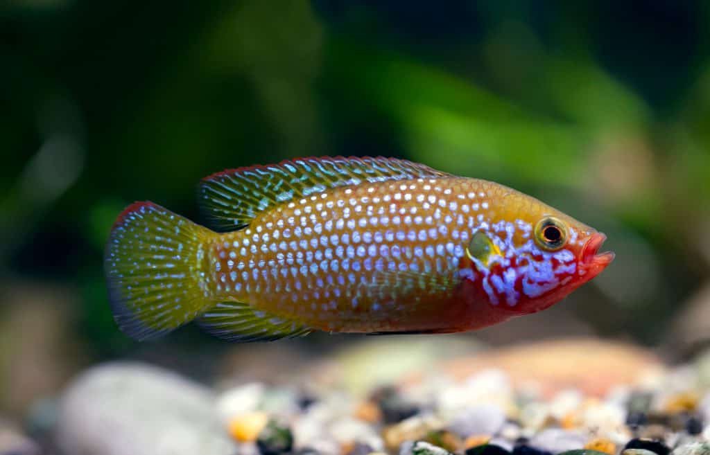 Ívási időben az egyik legszebb Cichlida, ugyanakkor gyakran nagyon harapós és turkálós. Általában más halakkal szemben agresszív, így leginkább egy 80 liter körüli medencében 1 párt helyezhetünk el, esetleg 1 Ancistrus algaevő harcsa-pár kerülhet még mellé.