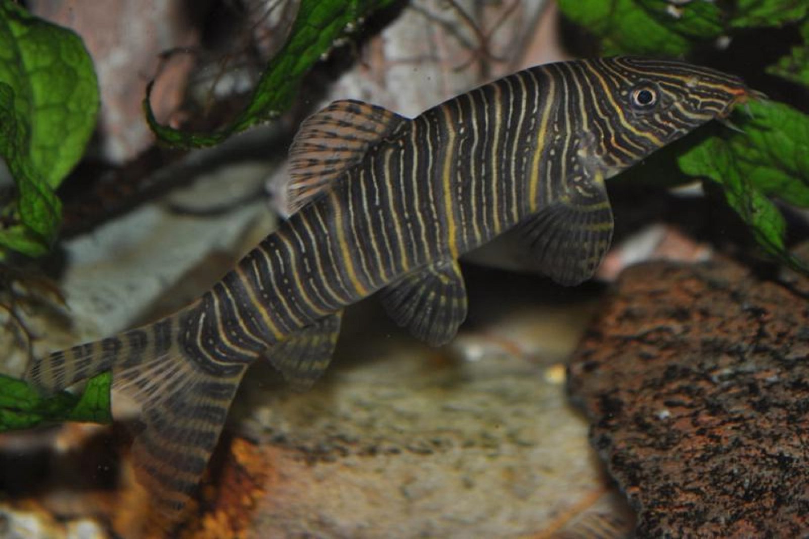 - Dekoráció: aljzatnak használhatunk homokot, vagy apró szemű kavicsot. Nagyobb gömbölyű kövekkel, valamint gyökerekkel díszíthetjük a medencét. A gyengébb világítást is elviselő növényeket telepítsünk az akváriumba: pl. Microsorum pteropus, vagy Taxiphyllum barbieri. A vízmozgás lehet közepesen erős.