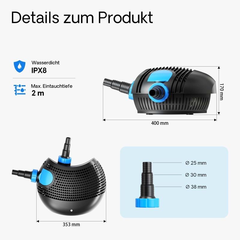 - Alkalmas kerti tavakhoz, vízforgatáshoz, szökőkúthoz, patakokhoz