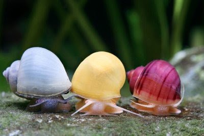 Színes almacsiga (Pomacea bridgesii) különlegessége az akváriumoknak. Kék, rózsaszín és fehér színben forgalmazzuk őket.